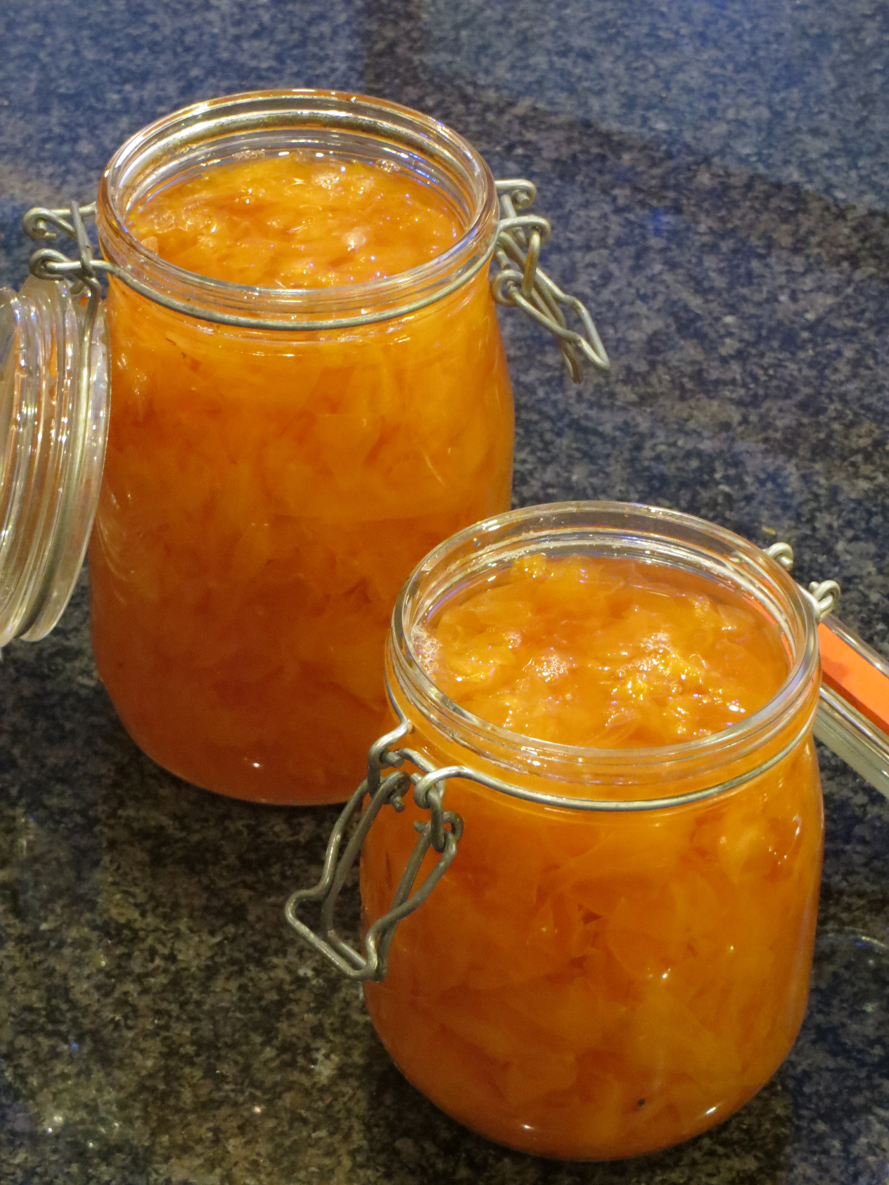 It is undoubtedly a very fragrant concoction and very obviously the brimming with the fruity, citrus aromas of Lady Emma Hamilton. The colour is much as I had hoped – apricot jam/mamalade – and the petals are nicely distributed throughout the mix. They still have just a little bite to them.