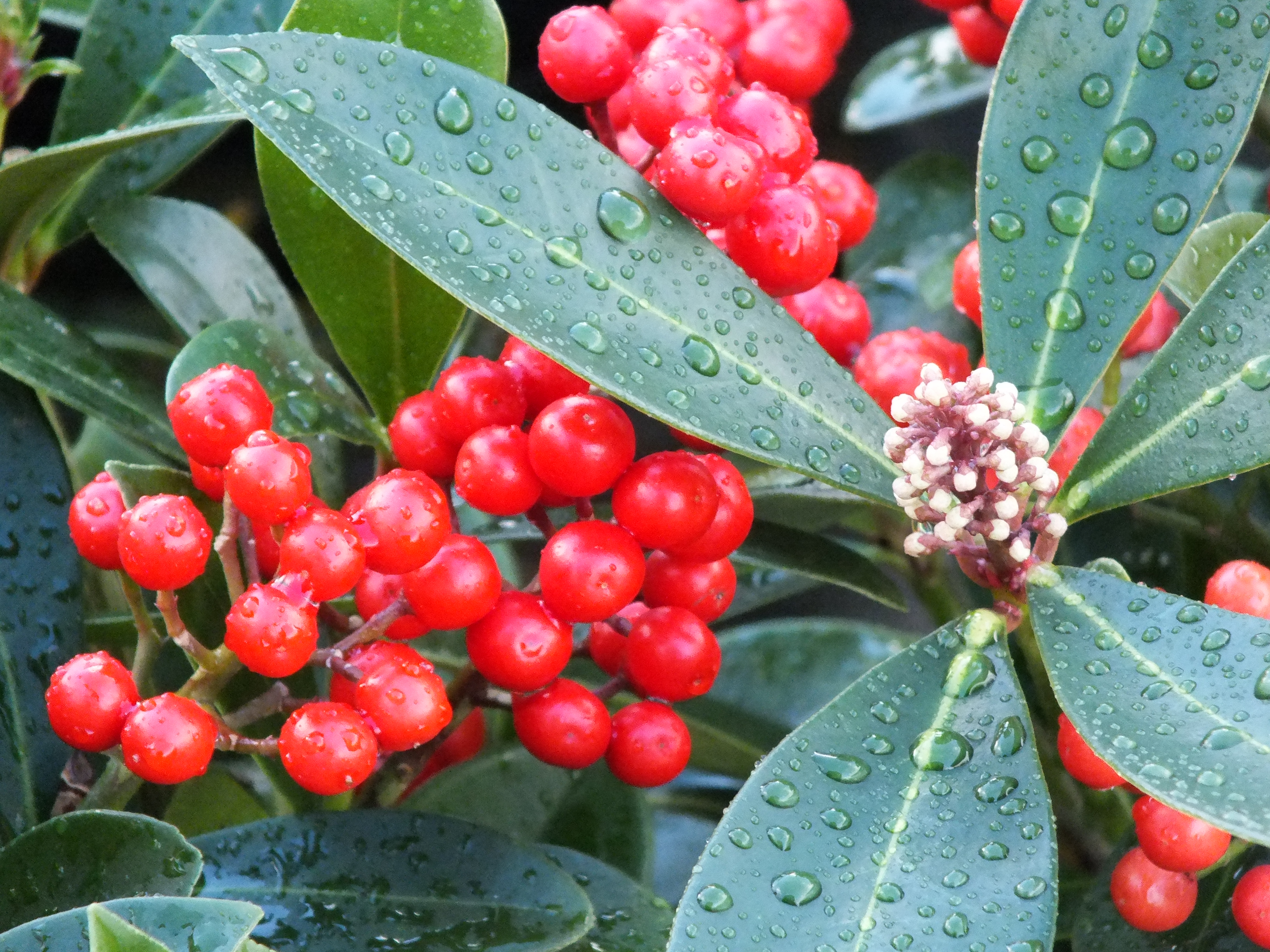 Hermaphrodite Skimmias offer, if it needs to be said, the best of both worlds – self-fertile plants with flower and fruit.