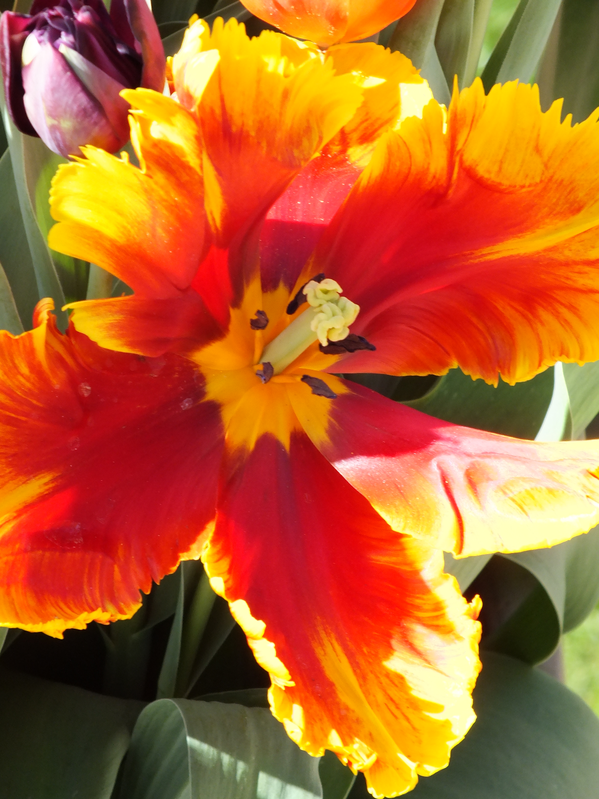 Fritillaris imperialis – just about holding its own with the fire-bright tulip, Princess Irene