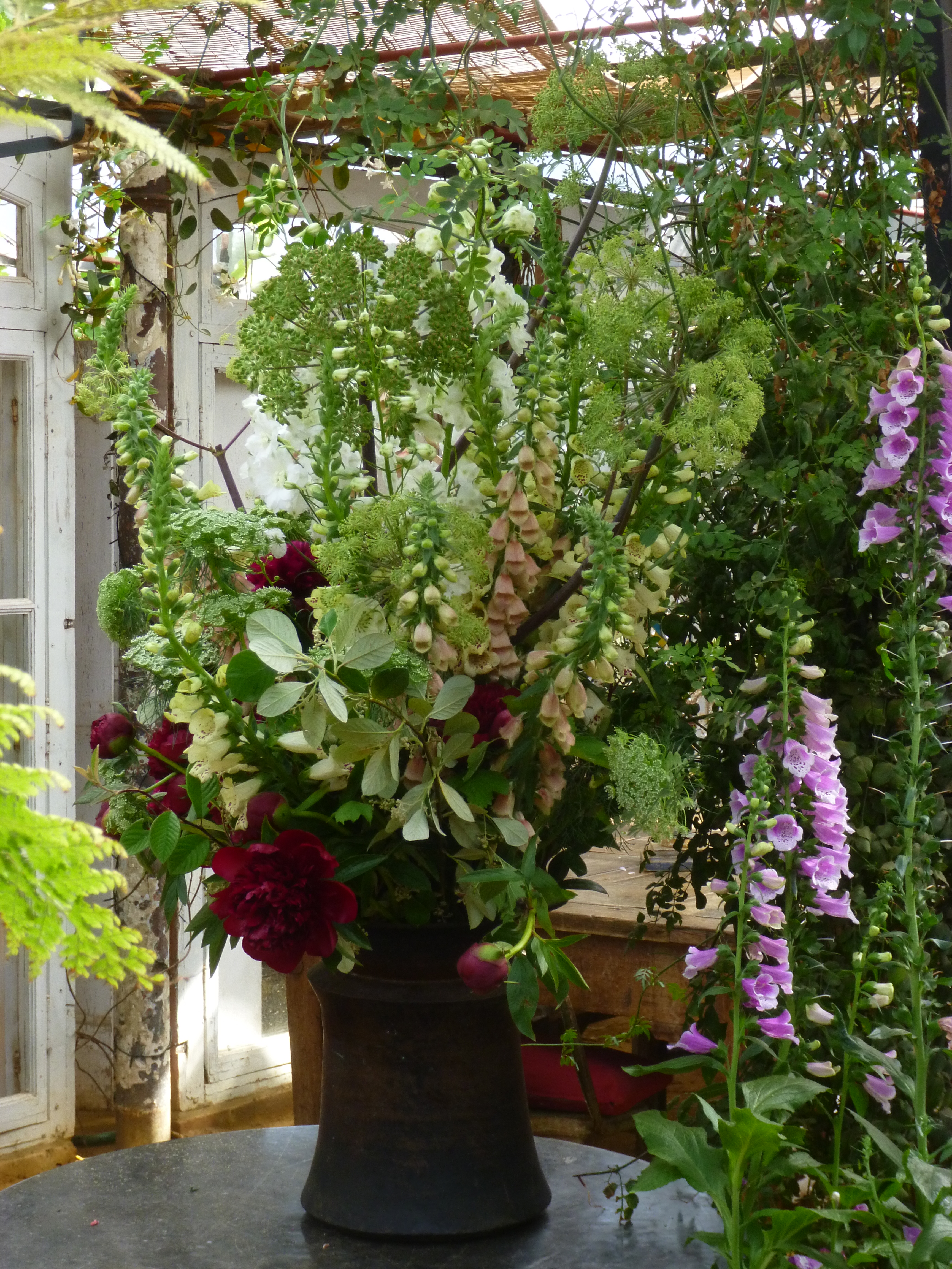 Dahlia Bishop of Llandaff with Verbascum Cherry Helen