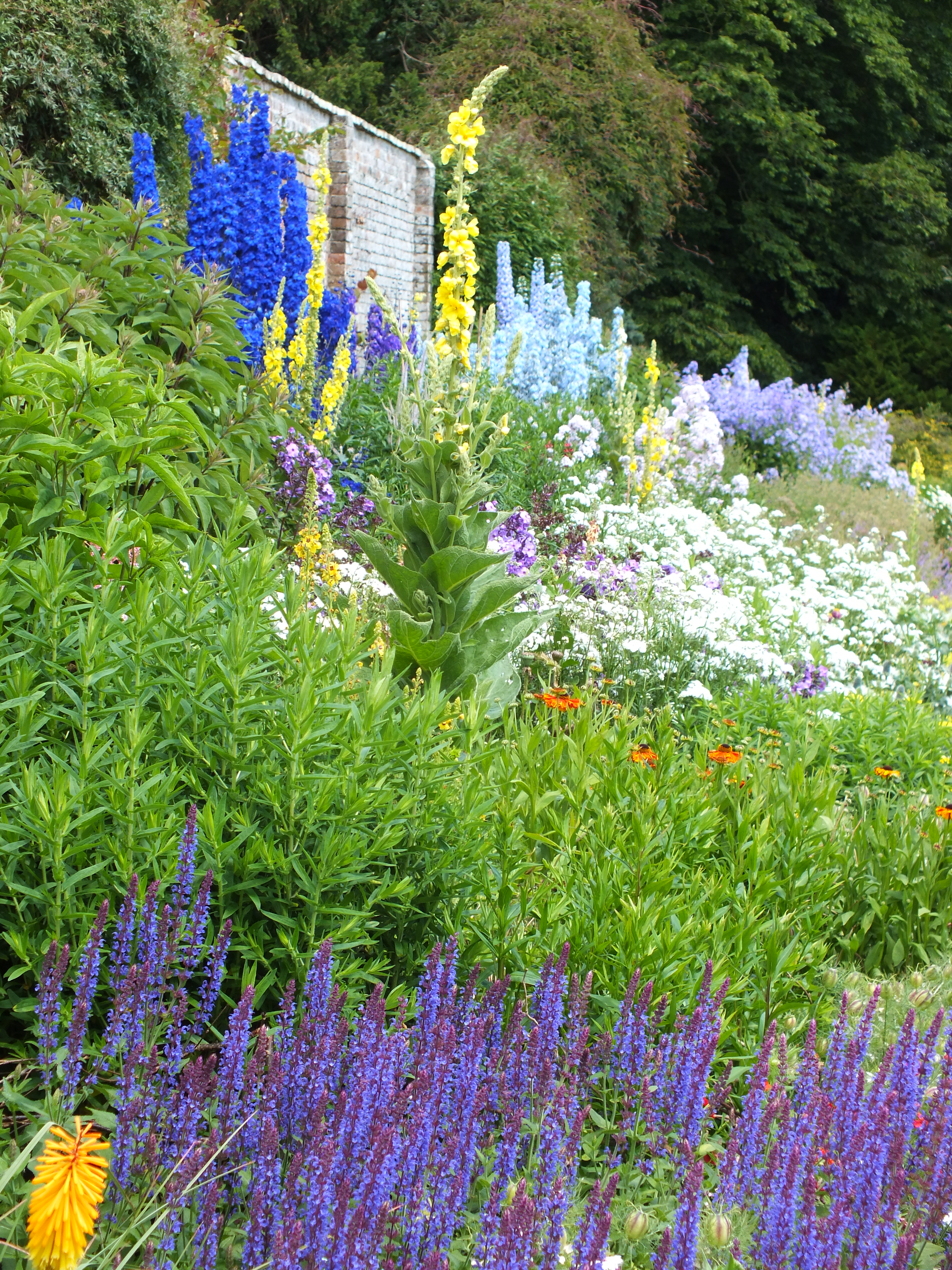 The border is 60m long and backed by the mellow brick of the kitchen garden wall.