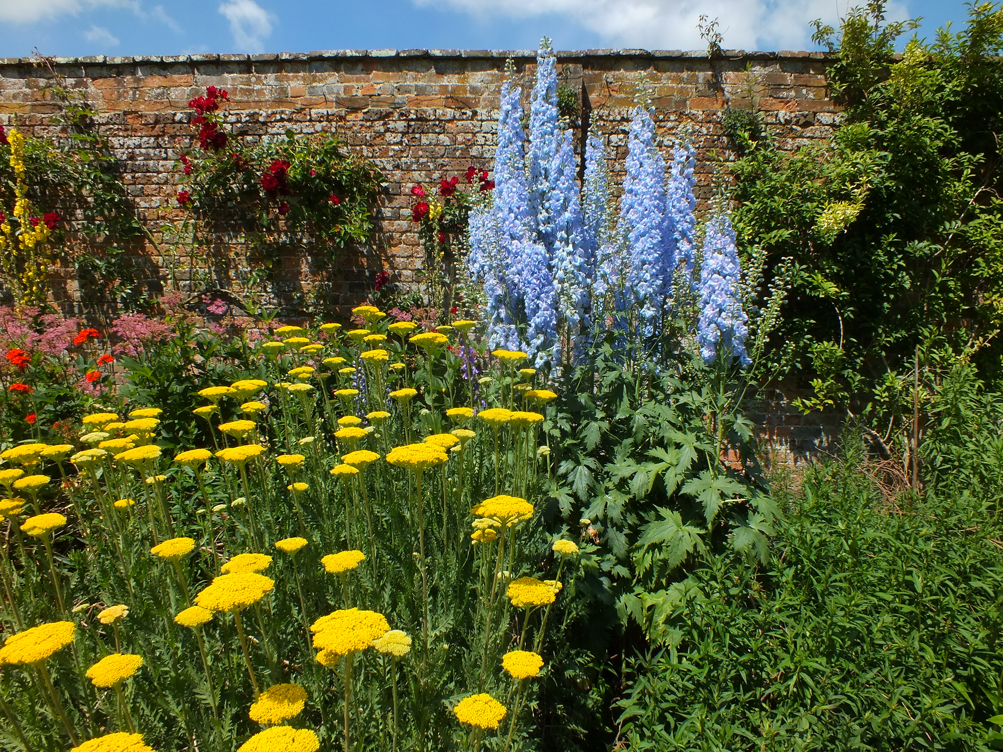 The herbaceous border has been planned to reach its peak on 7th July, Miss Havergal’s Birthday – Delphiniums, Achilleas, Verbascum and Phlox have taken over from Lupins, Anchusa, Geraneums and Veronica which were in flower a little earlier. Asters, Heleniums and solidago will continue the show into late summer and autumn.