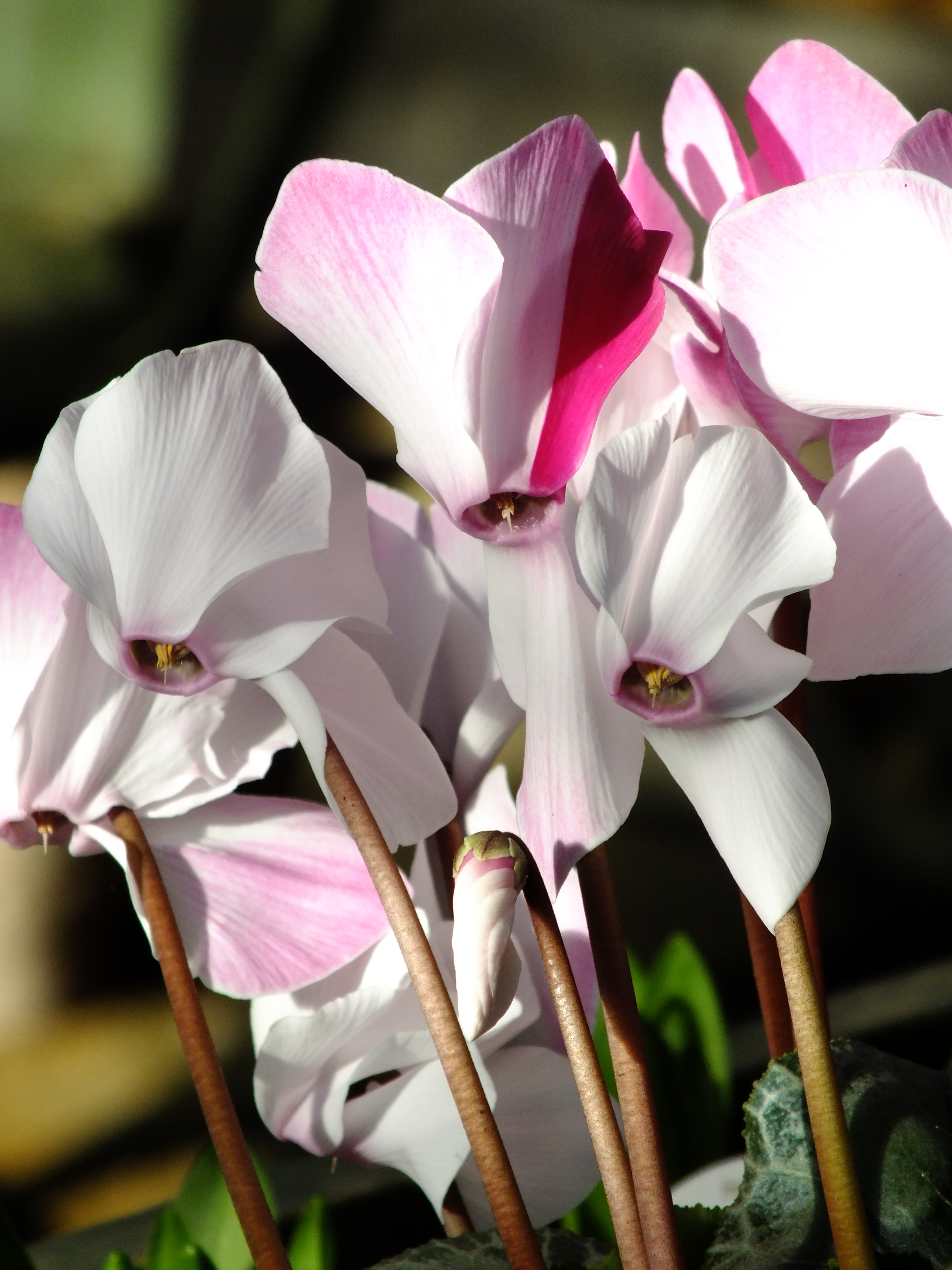 Cyclamen persicum, a cool customer for a cooler spot in your home this winter. Clean whites, blush pinks, deeper carmines, burgundy and wine… and the occasional flash like these ones, which I rather like.