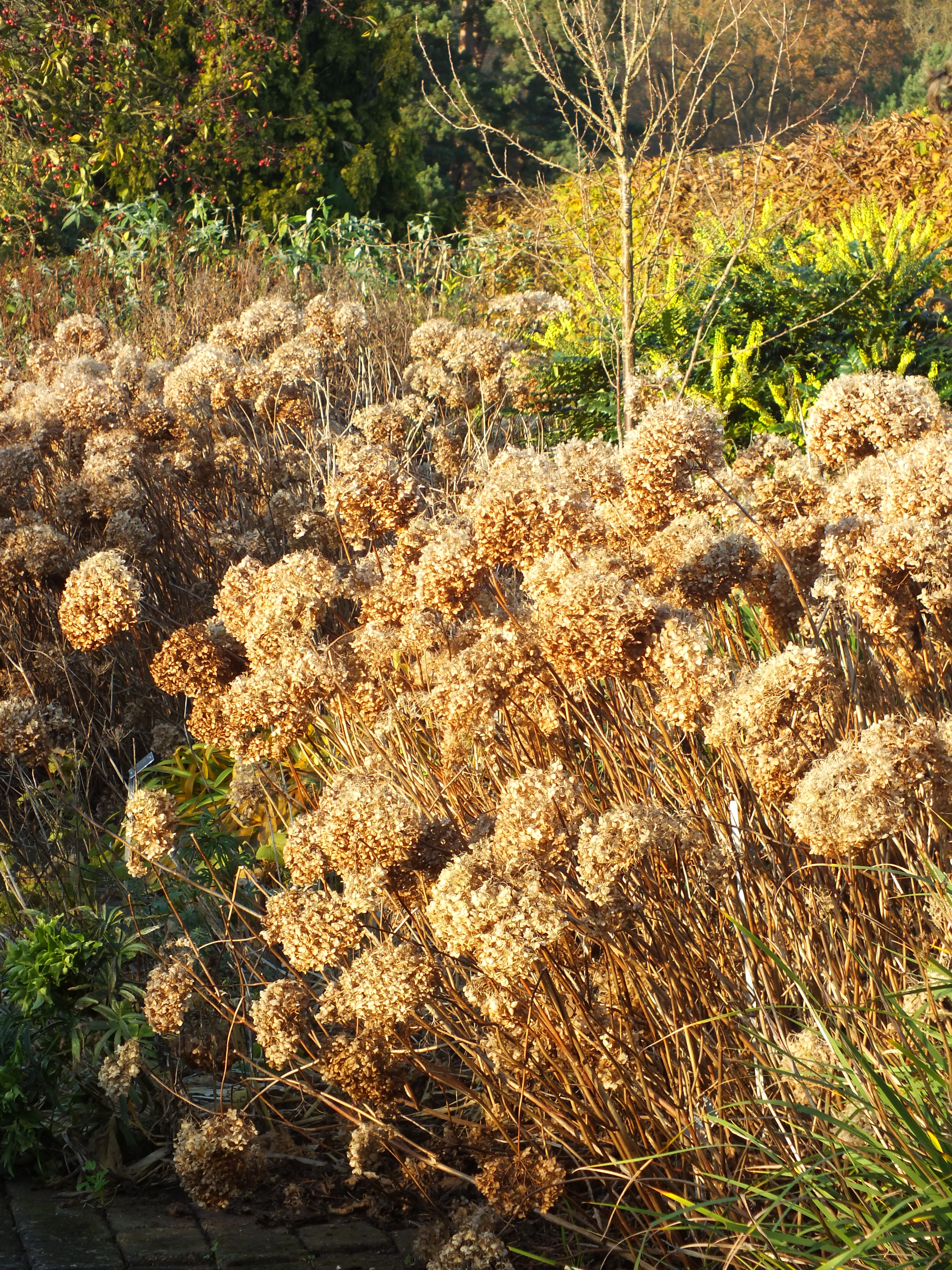 Elsewhere at Wisley, the manicured Great Double Herbaceous Borders, Hydrangea Annabelle settling down for the Winter, Ginkgo biloba in the Bowes Lyons Rose Garden, the Fruit Mount in sun.