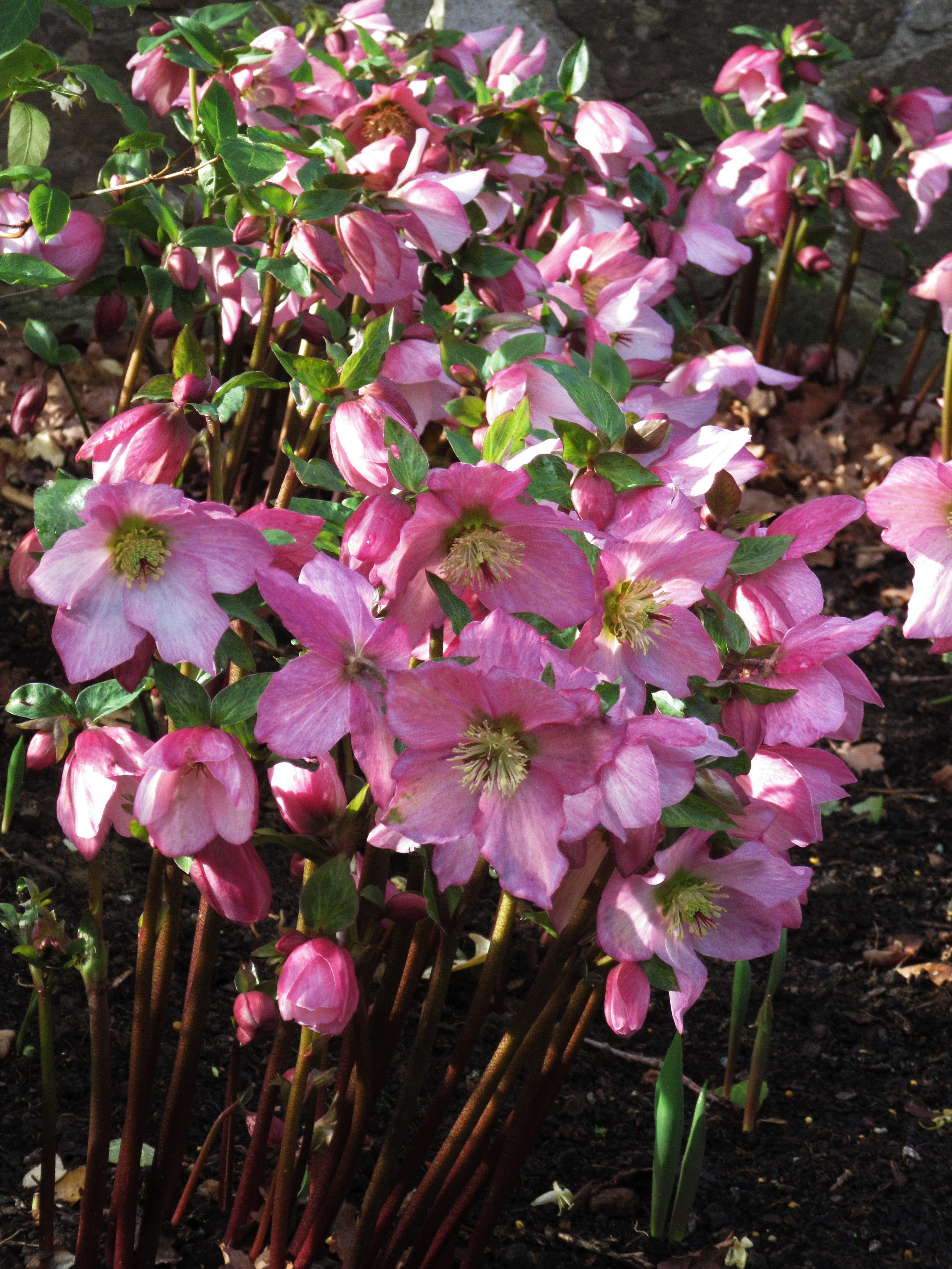 Hellebore Walburton’s Rosemary is planted in a great swathe on a raised bed also by the entrance to the gardens and it is a perfect way to display these nodding flowers – deep soil, dappled shade and the flowers presented at an accessible height – no crouching to peer, upside down, at the treasures shyly hiding their faces and watching the leaf litter.