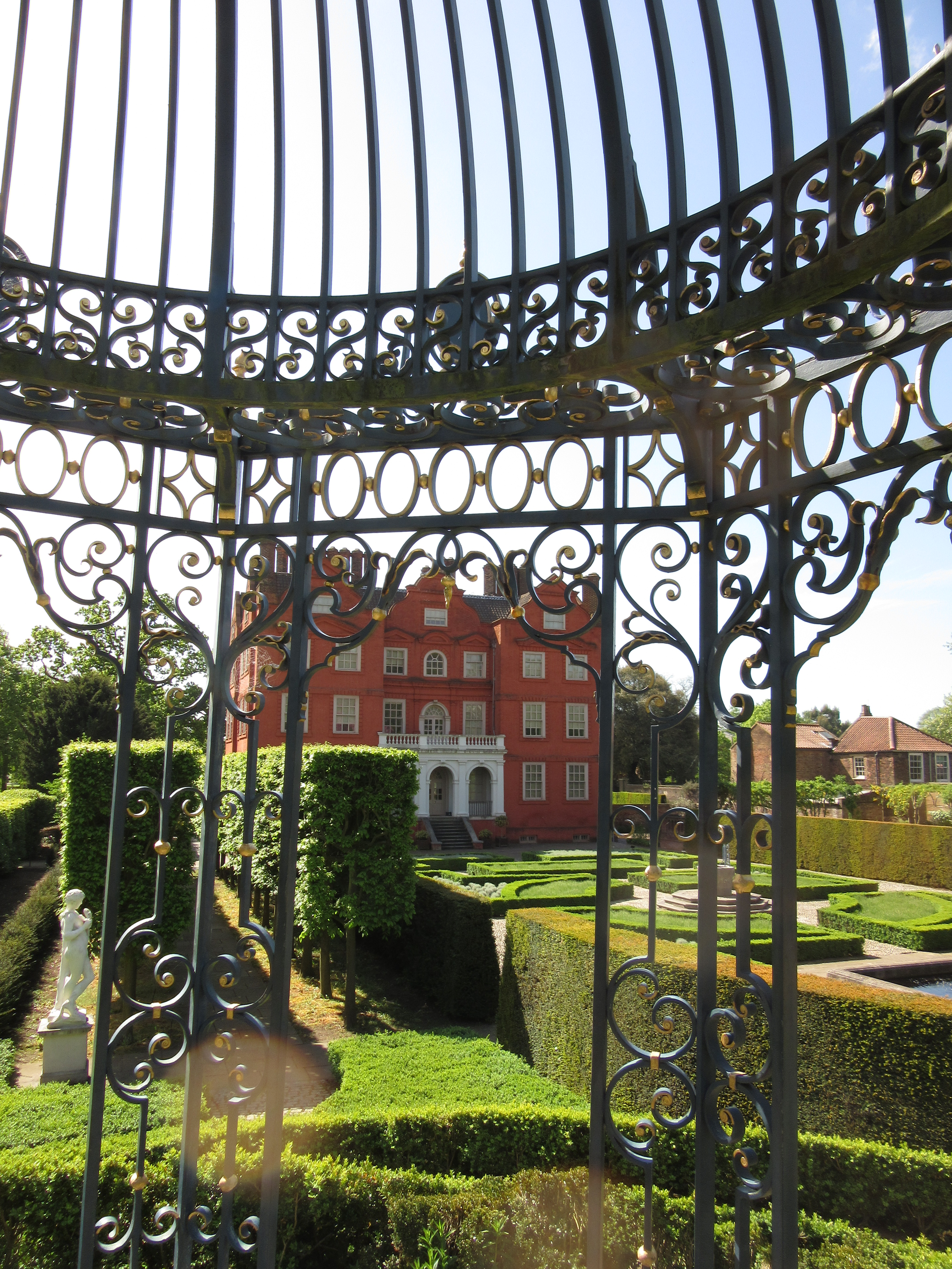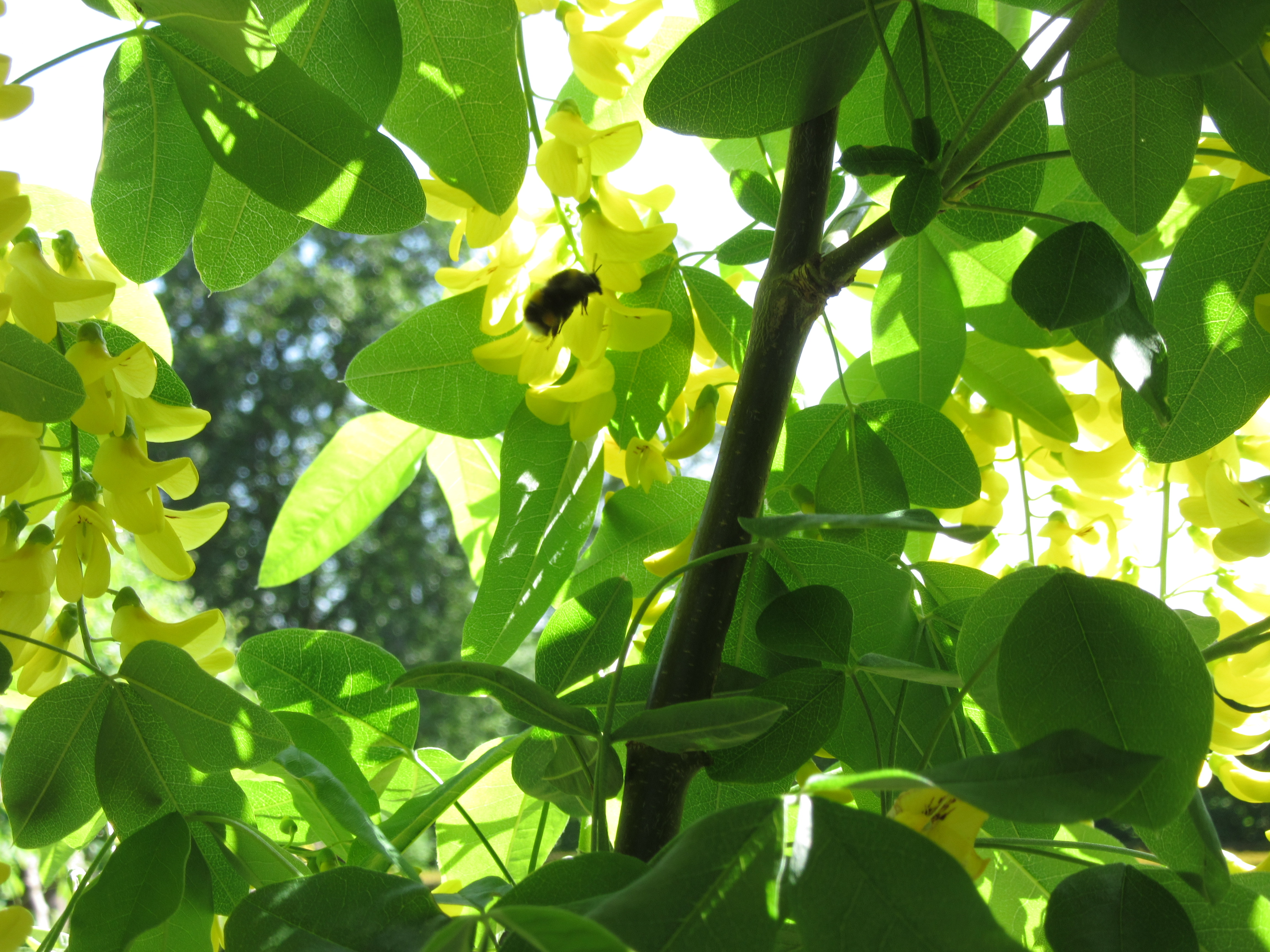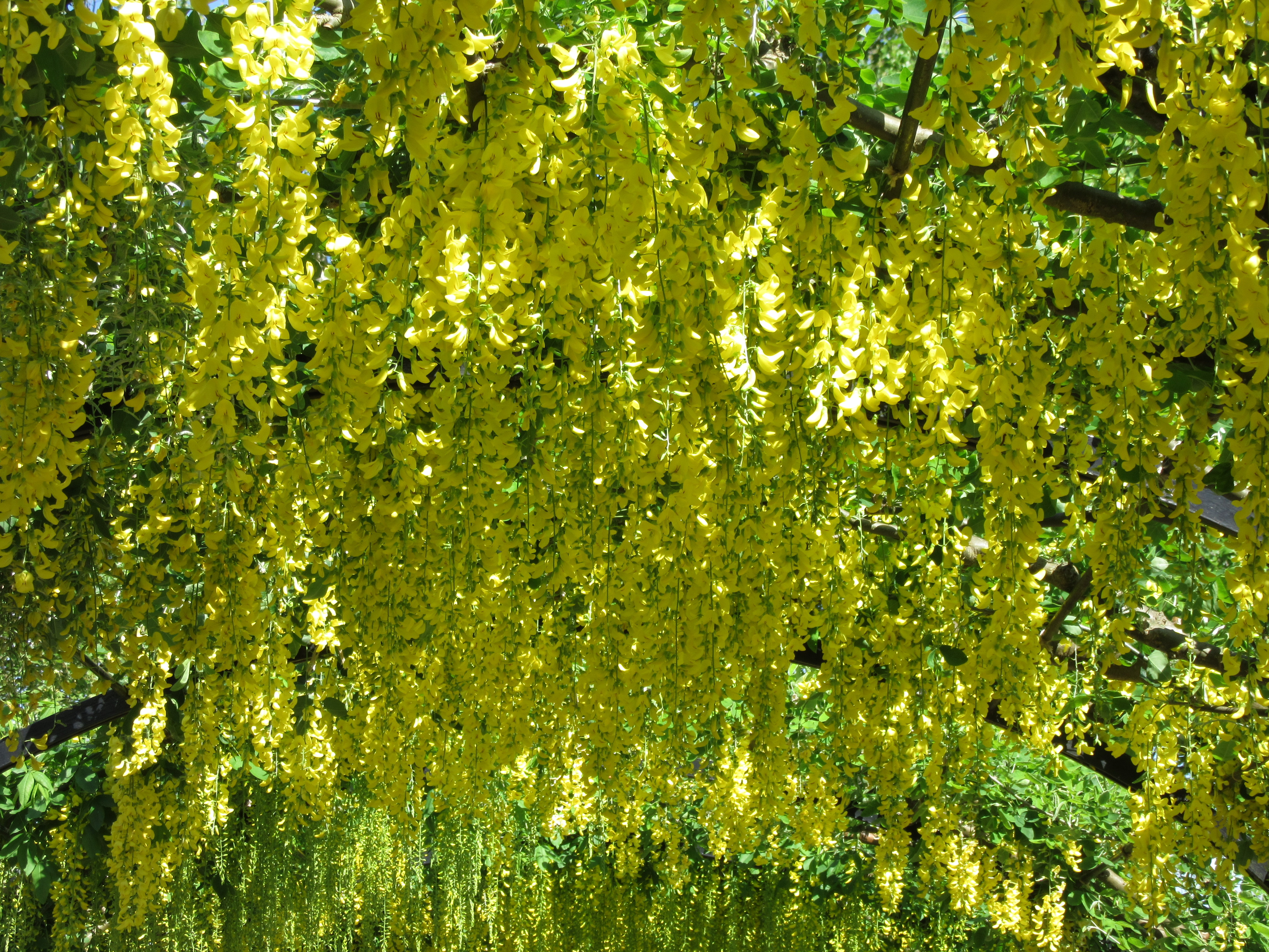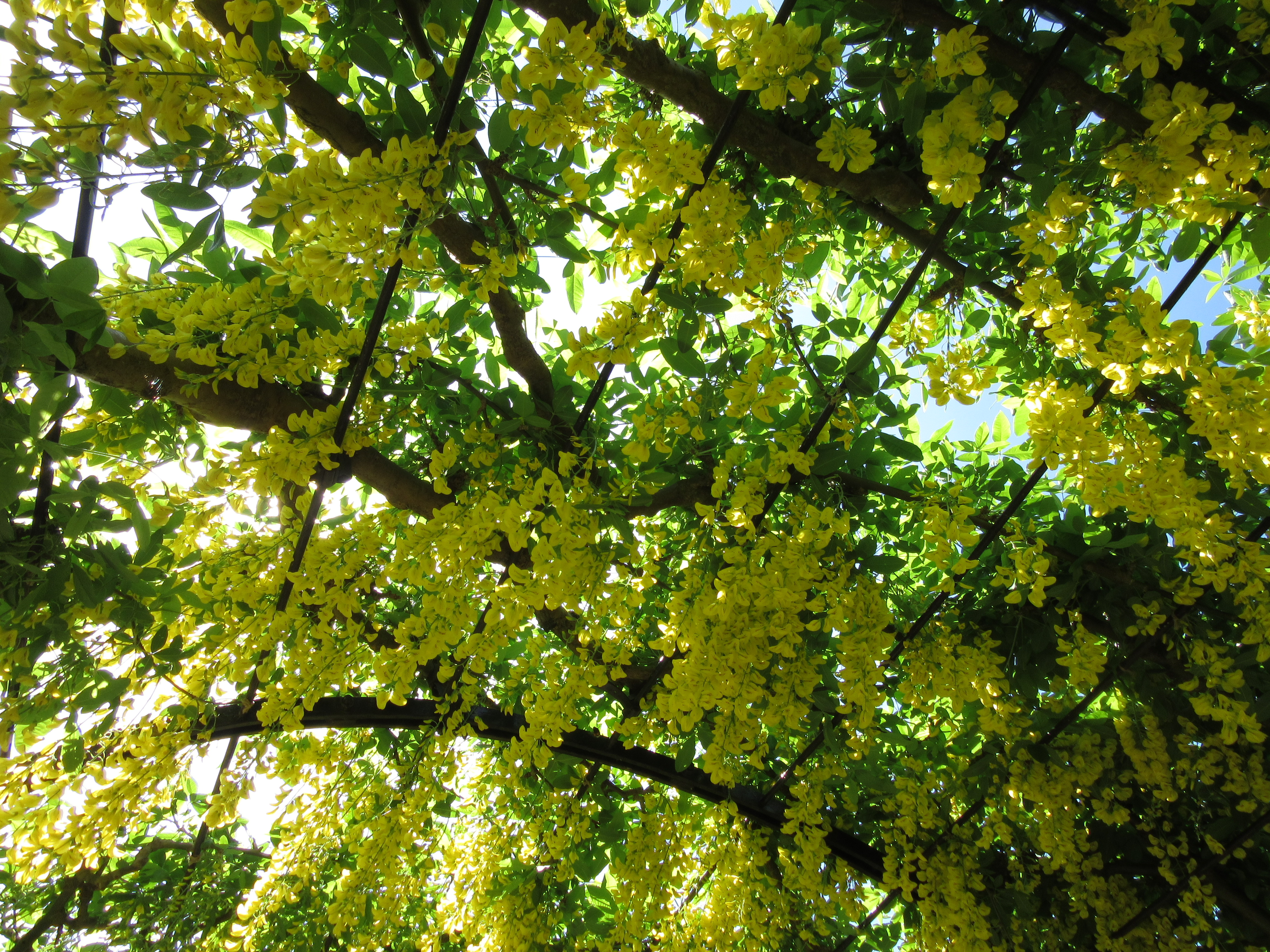 A bee-line today straight over to Kew Palace and the gardens behind – a sunken herbalists garden and a more formal parterre. Around the former, an arched pergola wrapping around three sides of the garden with Laburnum threaded through the metal tracery. It hasn’t peaked yet – another week and it will be quite sumptuous but then again, I might easily have missed its nadir – and rain is forecast for tomorrow and that might spoil the blossom.