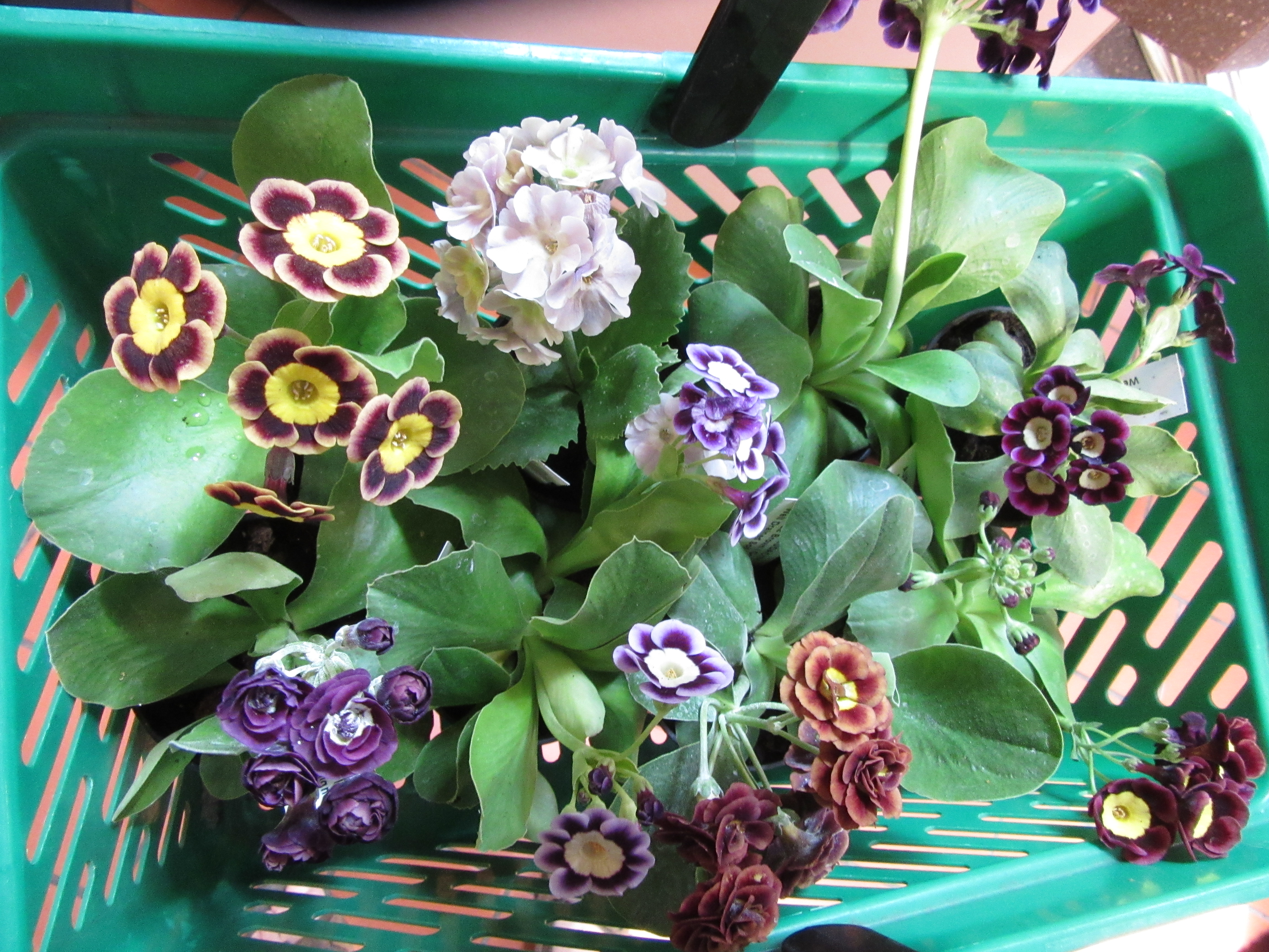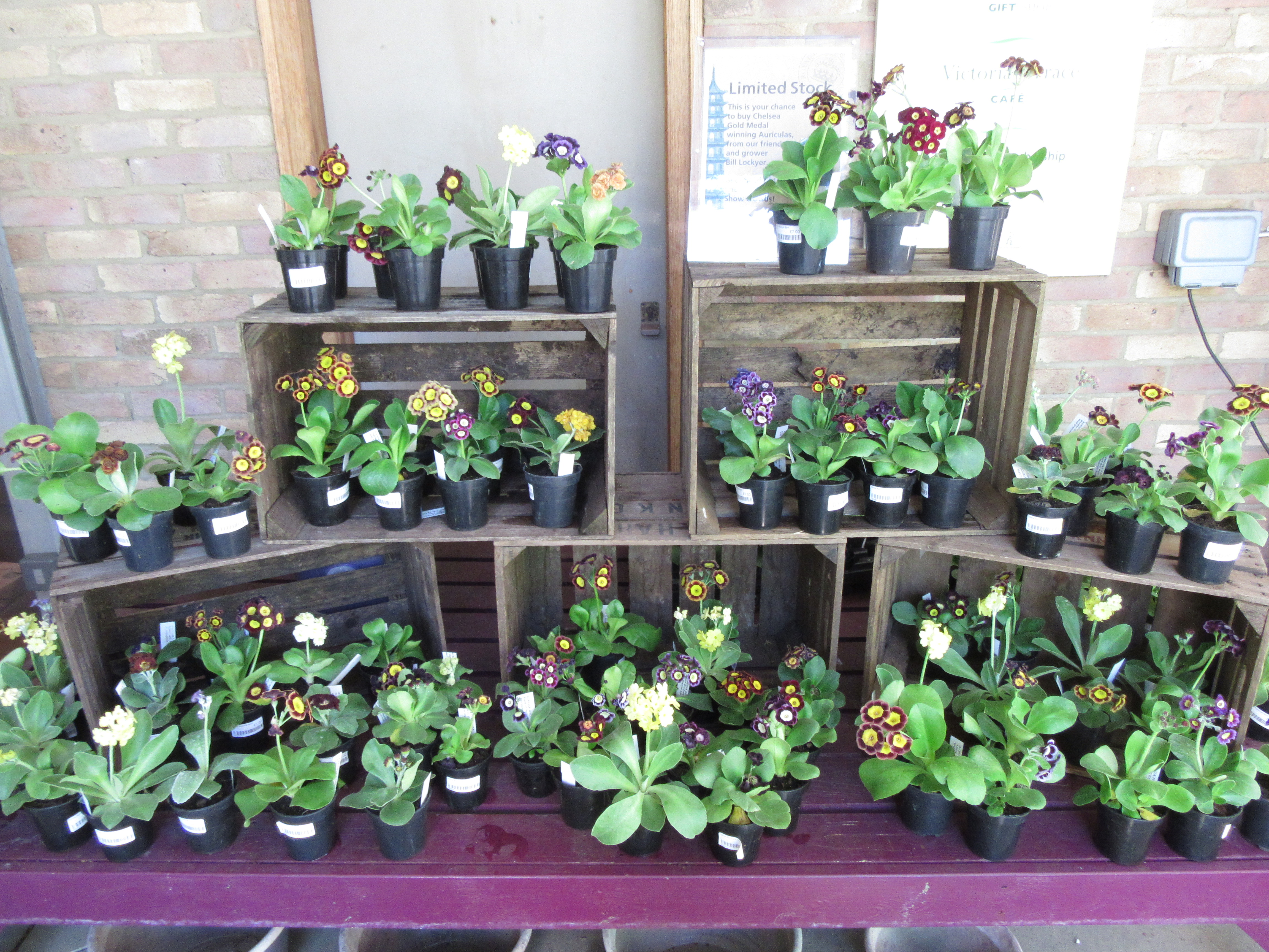 Auriculas on sale at Kew Gardens – not in their little plant centre but right by the exit. How Fiendish! I don’t think they have had them in stock for a couple of years and if I remember rightly, they were selling them last with Victorian terracotta pots, at £10 or more. Now they are just £7 and members get a 10% discount. Bargain!