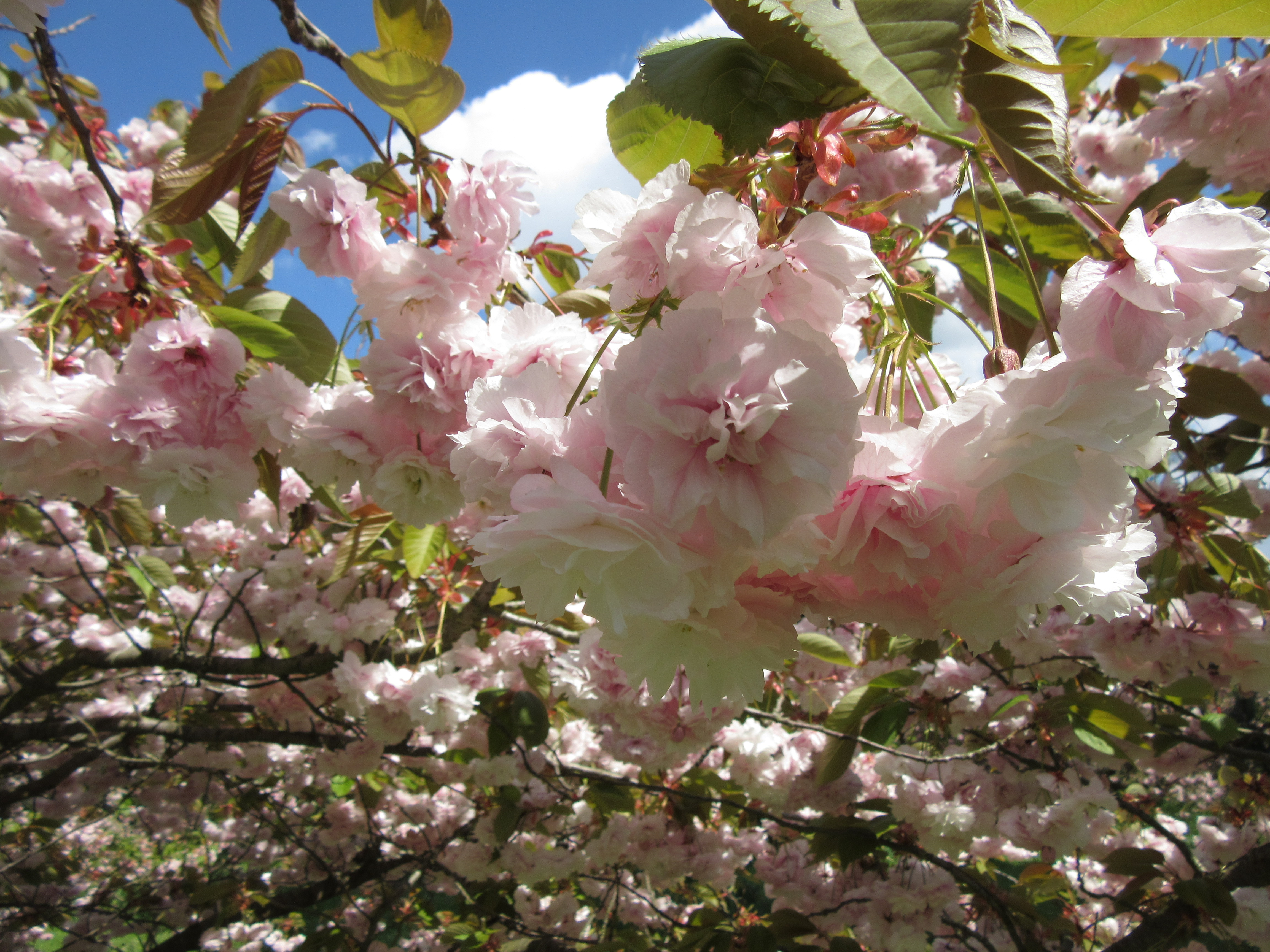 Sadly, I couldn’t find a name plate for this white, pristine fresh and quite reserved tree. Kanzan however, below, unmistakable!