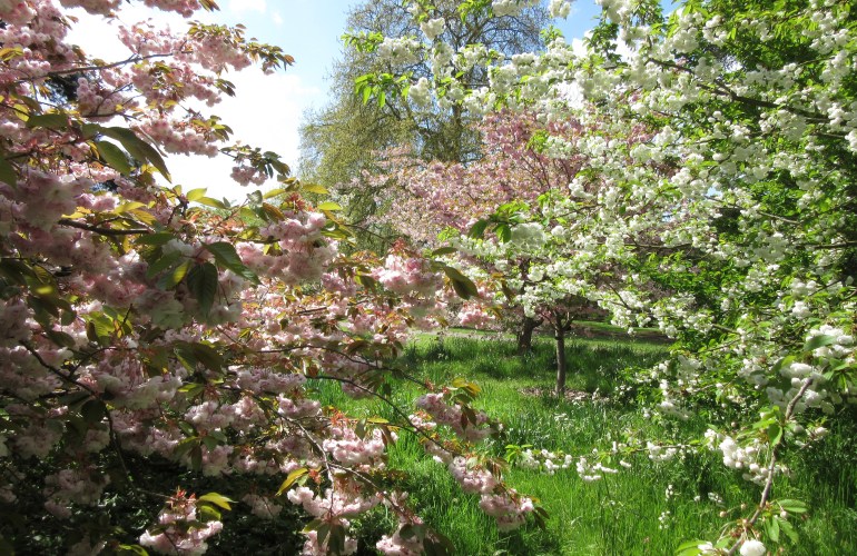 The Cherry Walk at Kew Gardens, coming up from the Mediterranean Garden and heading towards the roses and Palm House. A couple of weeks ago, this path was lined with pink and white confections, flurries of blossom in candyfloss shades - but now green is the theme. Yet... There is still rather a lot going…