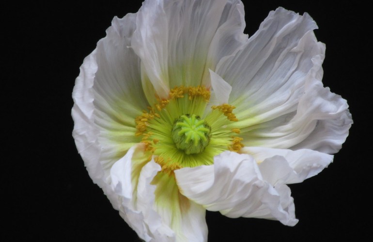We shouldn't be seeing poppies at this time of year - though with mild winters and Indian Summers, some of the nature's timing can be off. These I suspect came into the Nursery from Covent Garden Flower Market. I'm smitten regardless of seasonal-correctness. The white poppy had just been teased out of its pod and…